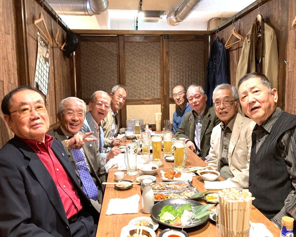 今年のクラス会は、昨年よりも低料金の会場を探し、新宿西口の酒陣一鐵で開催しました。今回は常連出席者の数名が都合で欠席になり、出席者は8名で、見﨑先生は膝に不安が有るとの事で、残念ですが欠席されました。還暦60歳から始めたクラス会は15回目の開催です。今回は77歳、喜寿の祝いの集いになり、楽しく再会を喜びました。初めに、今年逝去された大久保氏に黙禱し、次に先頭受付者の池田氏の乾杯で開宴しました。乾杯後は雑談と飲食を暫く楽しみ、その後、各自の77年間のダイジェスト報告で歓談が弾み、あっという間に3時間が過ぎました。会の最後は最終受付者の小林氏に締めてもらい、80歳までのクラス会開催目標を確認し集合写真を撮って散会しました。